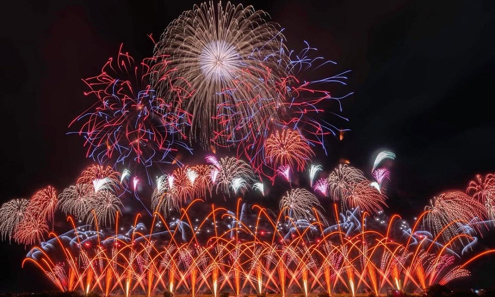 約3万発の打ち上げ花火と音楽ステージ、地元グルメが楽しめる。