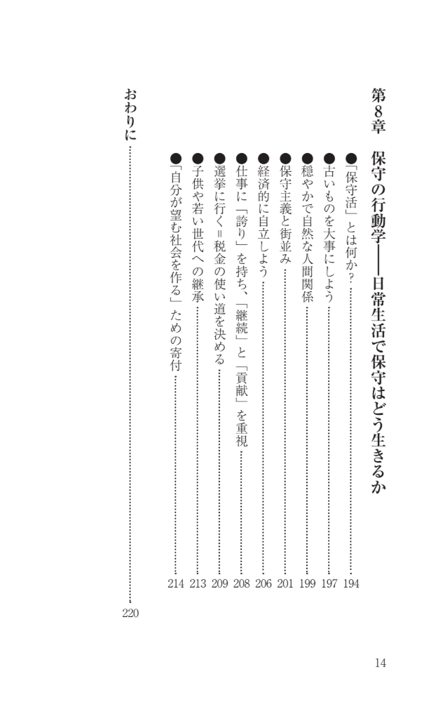 本書では、イギリス在住の元・国連専門機関職員が、保守とは何か、そして日本と海外の保守の比較、保守を重視せず多様化しすぎてしまったために社会が崩壊しつつあるイギリスの事例など世界の保守にかかわる状況や常識に加え、保守主義者として日常生活から取り組めることについて解説します。ポピュリズムや過激な排外主義になりつつある「日本の保守」に対し警鐘を鳴らし、本来の意味での保守活動の実践を促します。