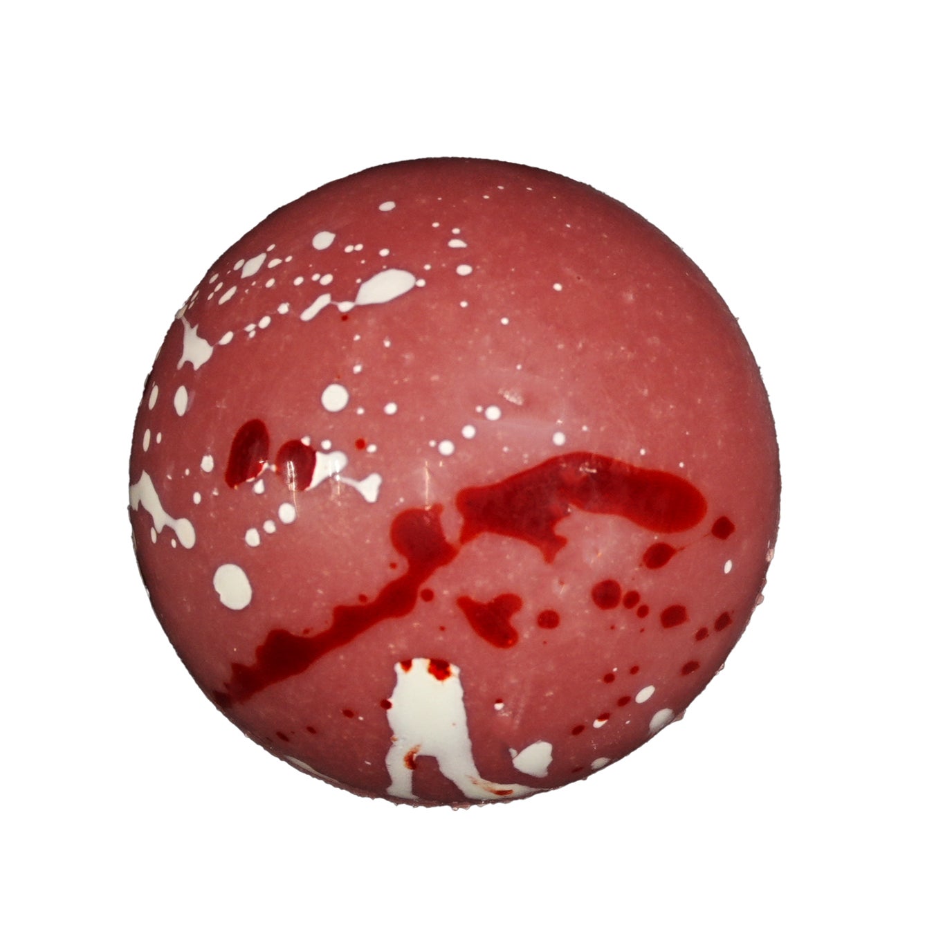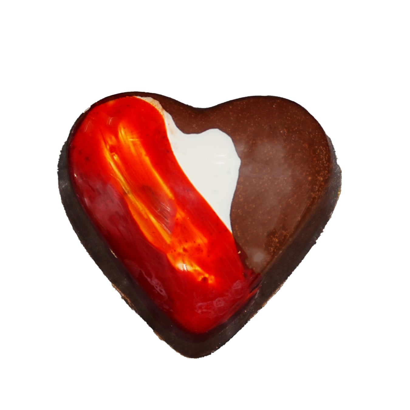 「浜千鳥の梅酒」に使用した梅の実とラズベリーを合わせた特製ジャムに、ラズベリーガナッシュを合わせた一粒。