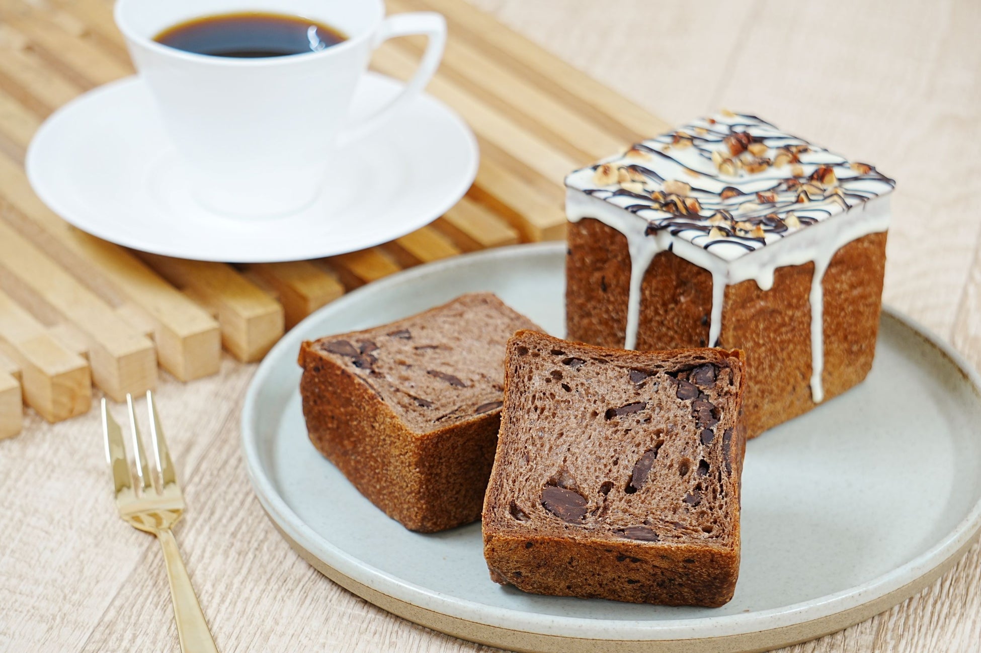 岩手県産小麦を使用し、もっちりとした食感が人気の食パン「パン・ドゥ・ミ」にチョコレートクリームとチョコレートタブレットをふんだんに巻き込み焼き上げたバレンタイン限定商品。