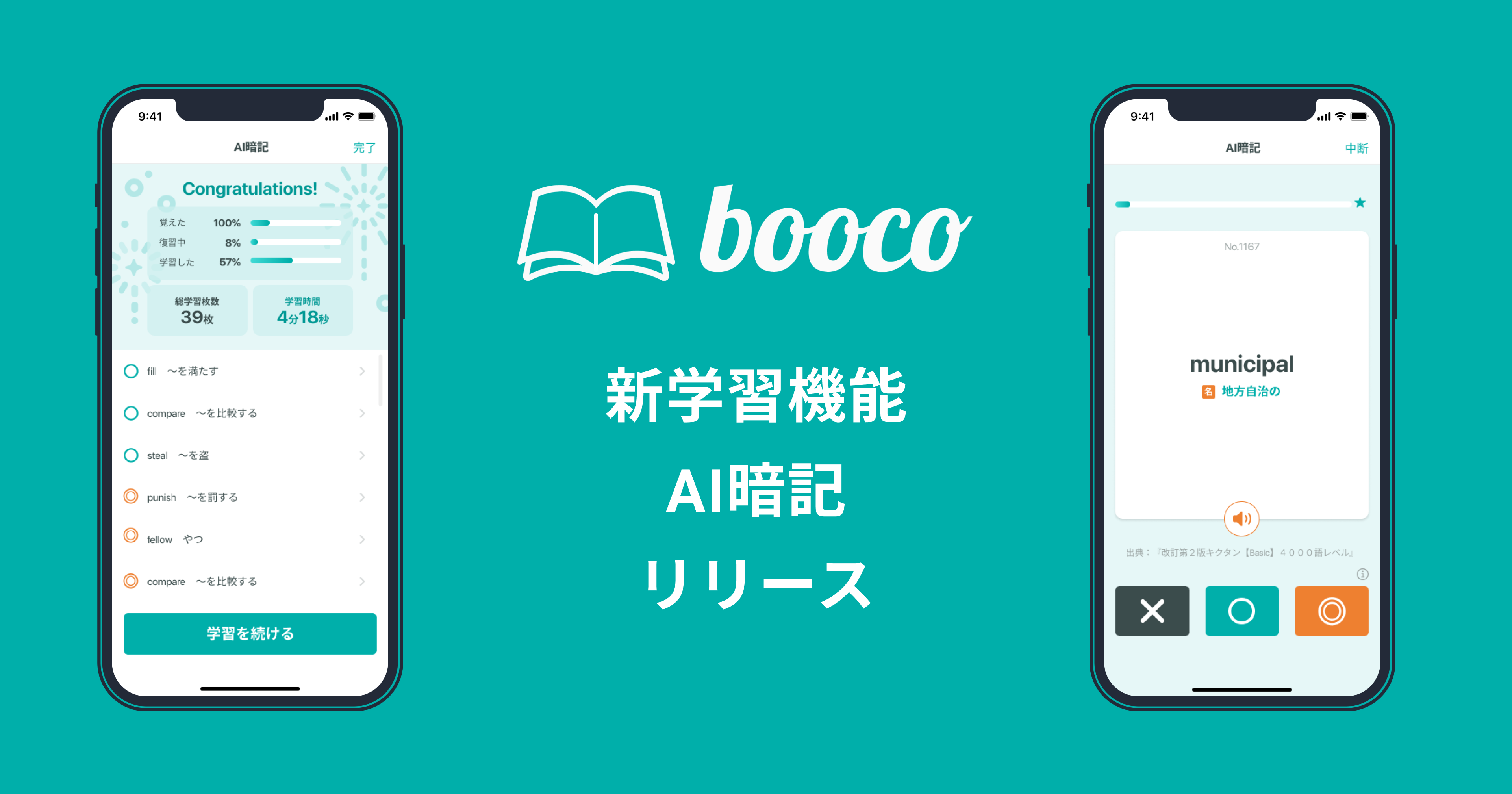 総合英語学習アプリ「booco」、新学習機能「AI暗記」をリリース