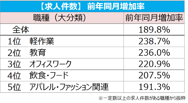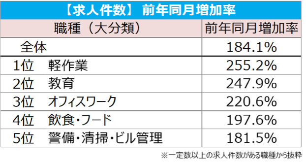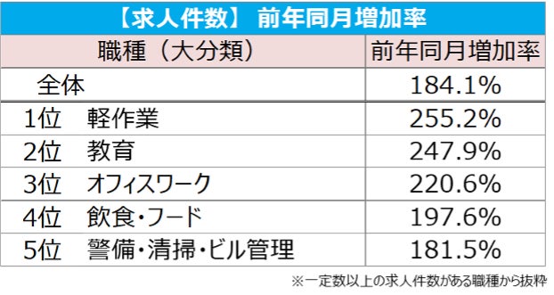 【図3】<全国>前年同月求人件数の増加率が高い職種TOP5
