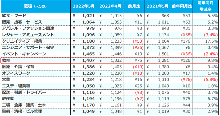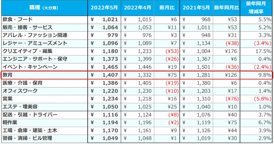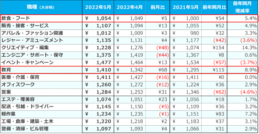 『2022年5月度 アルバイト・パート平均時給レポート』