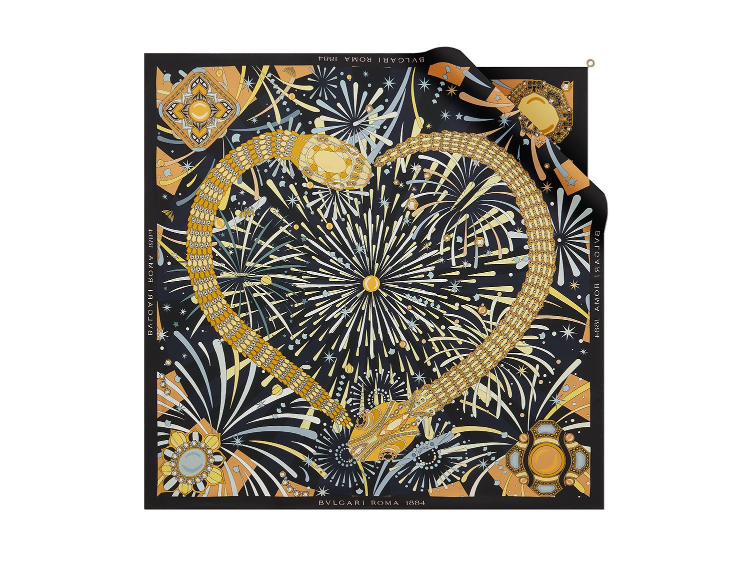 無限の変容と魅惑のシンボルであるセルペンティに敬意を表して、ブルガリは巳年に捧げるエクスクルーシブなテキスタイルコレクションを発表します。クオーレのテーマであるハートを形成するペアのセルペンティを中心に、このテキスタイルには美しい花火やブルガリの伝統的なジュエリーのデザインがあしらわれ、無限の再生とポジティブな変化を歓迎する祝祭が描かれています。