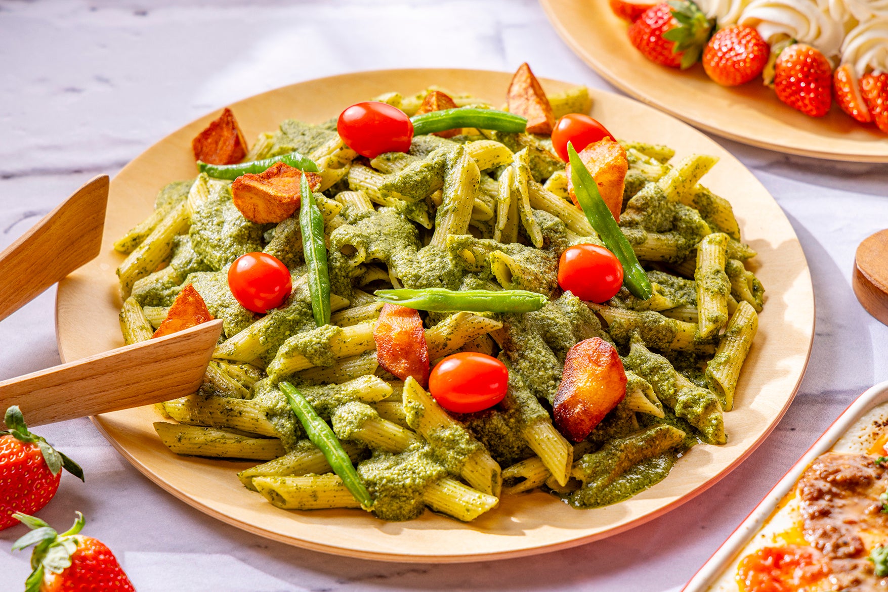 料理は、ピッツァ、ラザニア、パスタなど、イタリアンならではの味を追求したオリジナルメニューに加え、「レストランAVANTI」自慢のローストビーフをご用意しています。お肉の旨味を引き出す赤ワインソースや、和風おろしソースでお召し上がりください。そのほか、素材の旨味を凝縮した「チキンときのこフリカッセ」は、口の中でホロホロにとけるような鶏肉の食感が魅力。店内に設けられたライブキッチンでは、日替わりで旬の食材を活かしたシェフ特製の生パスタを出来立てでご提供します。