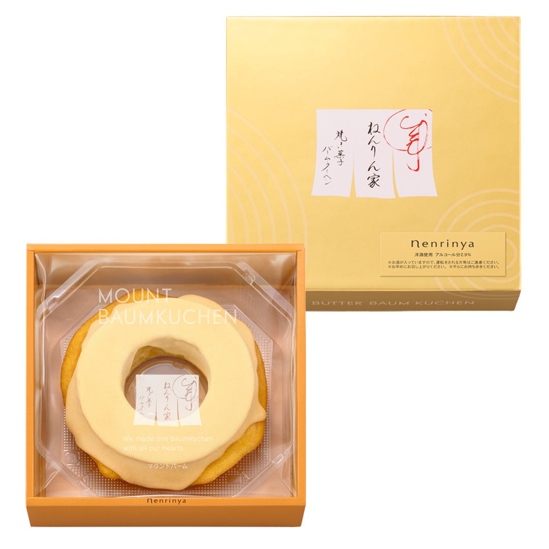 東京・銀座に本店を構える「ねんりん家」は、真っ⽩なのれんが印象的な⽇本うまれのバームクーヘン専⾨店。永年の研究開発から生まれた独創的な食べ心地と味わいで誕⽣と同時に⾏列店となり、現在では東京を代表する味として愛されています。