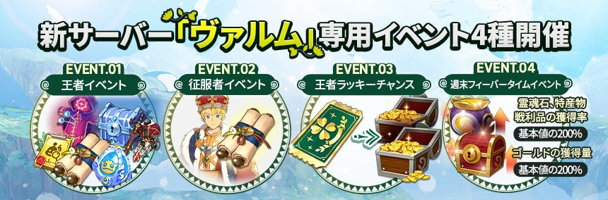 キャラ育成に役立つ独自イベント満載の新サーバー「ヴァルム」追加