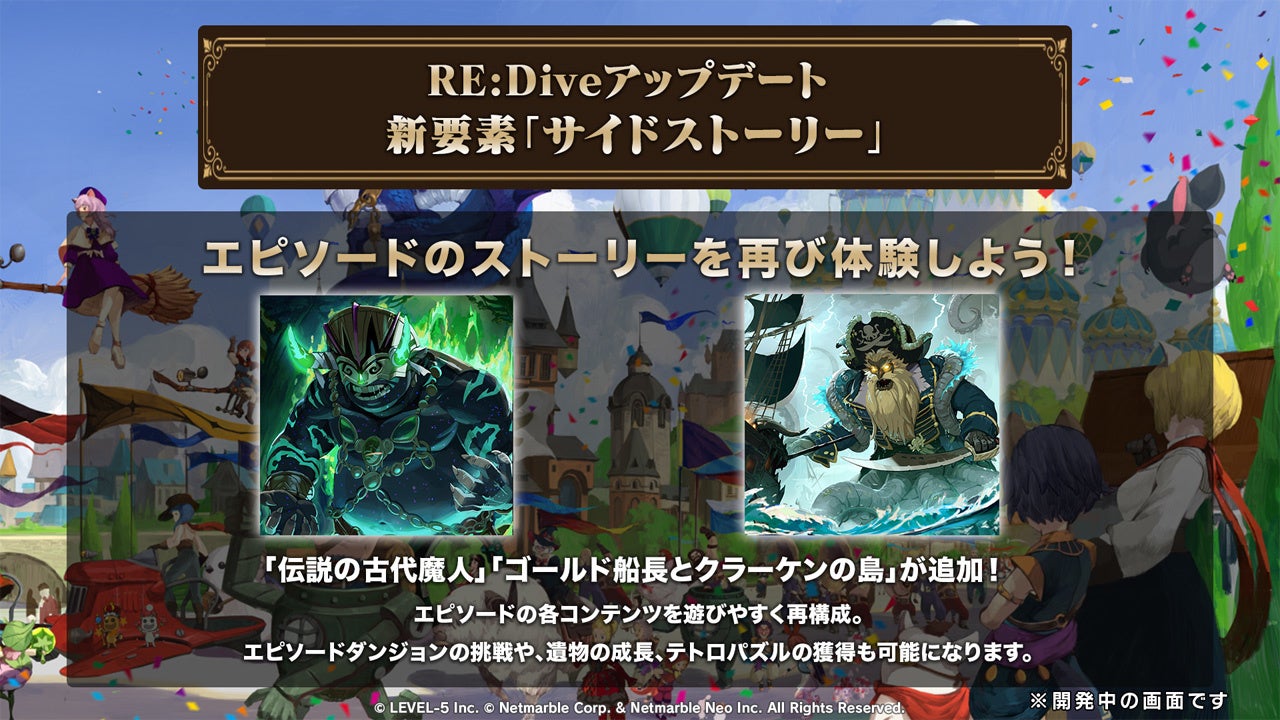 過去に実施したエピソード「伝説の古代魔人」と「ゴールド船長とクラーケンの島」を再度プレイでき、新ストーリーとなる「守護騎士の危機」もプレイ可能なコンテンツ「サイドストーリー」が登場いたします。