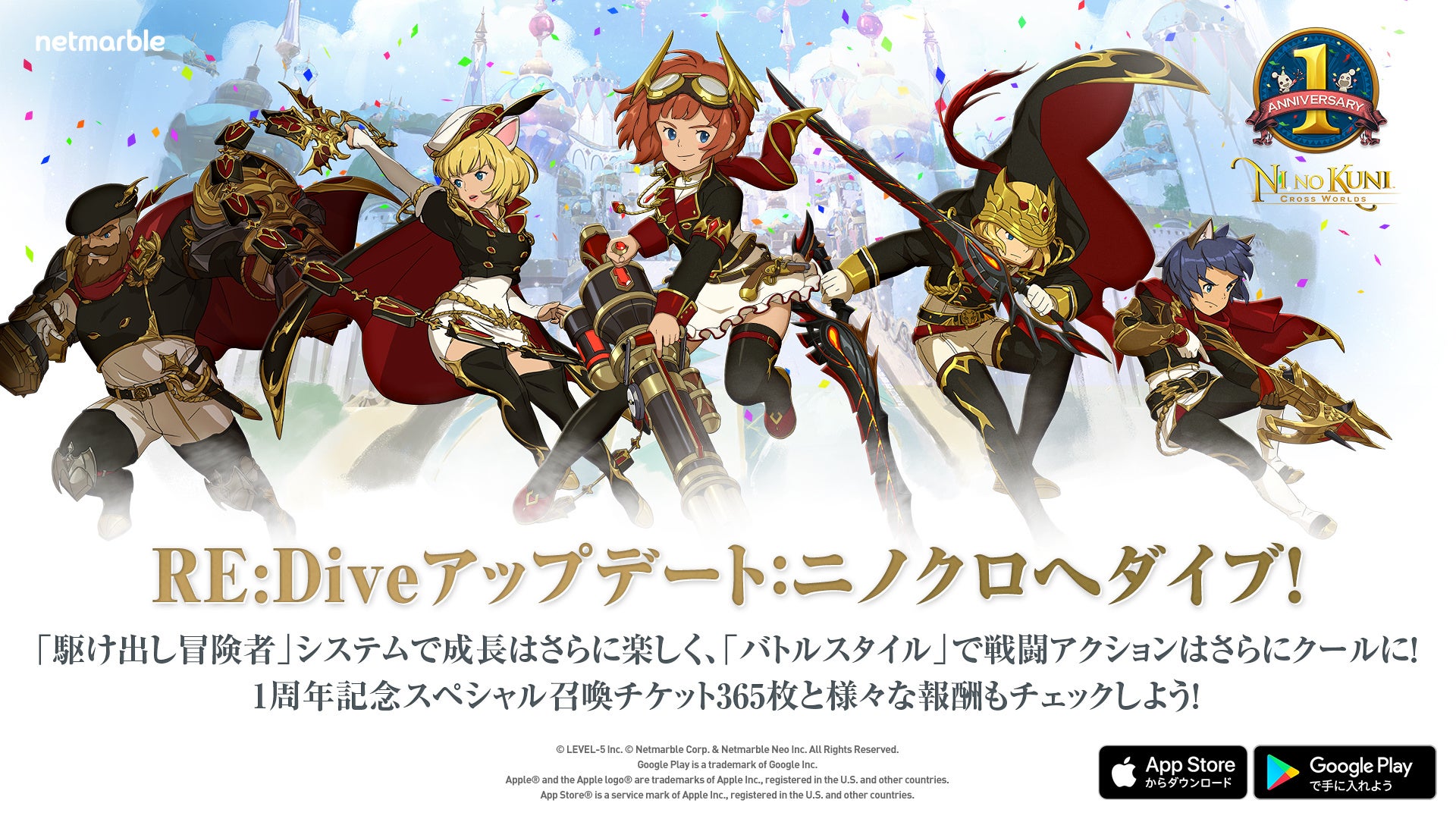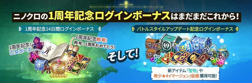 ネットマーブルは、レベルファイブとタッグを組みサービスを提供しているファンタジーアートRPG『二ノ国:Cross Worlds』(略称:ニノクロ)において、6月23日(木)に、正式リリース1周年を記念して多くの新要素を追加する「1周年RE:Diveアップデート」を実施したことをお知らせいたします。