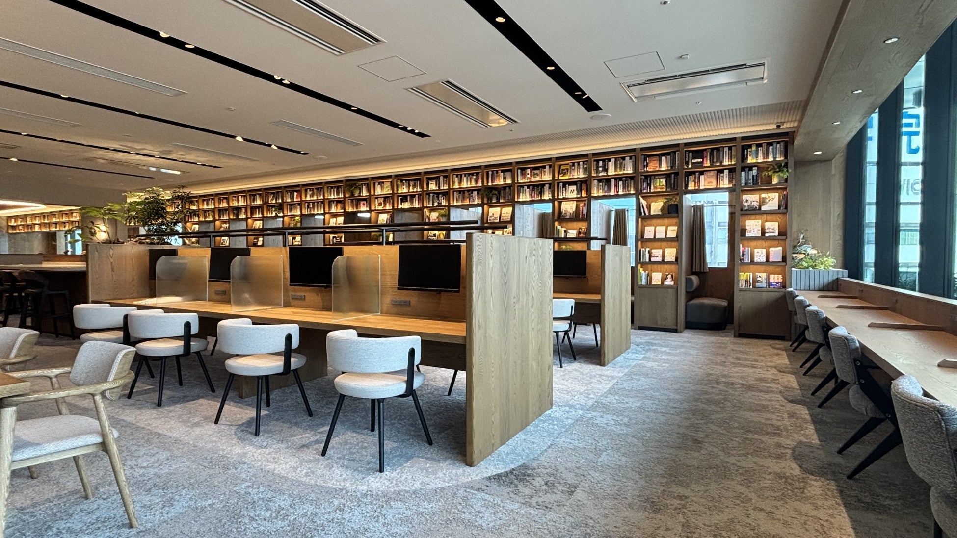 店内は、高速Wi-Fiと電源完備した総席数180席を備え、集中エリアとコミュニケーションエリアの明確なゾーニングが特徴で、仕事の生産性と創造性を高める環境を整えています。