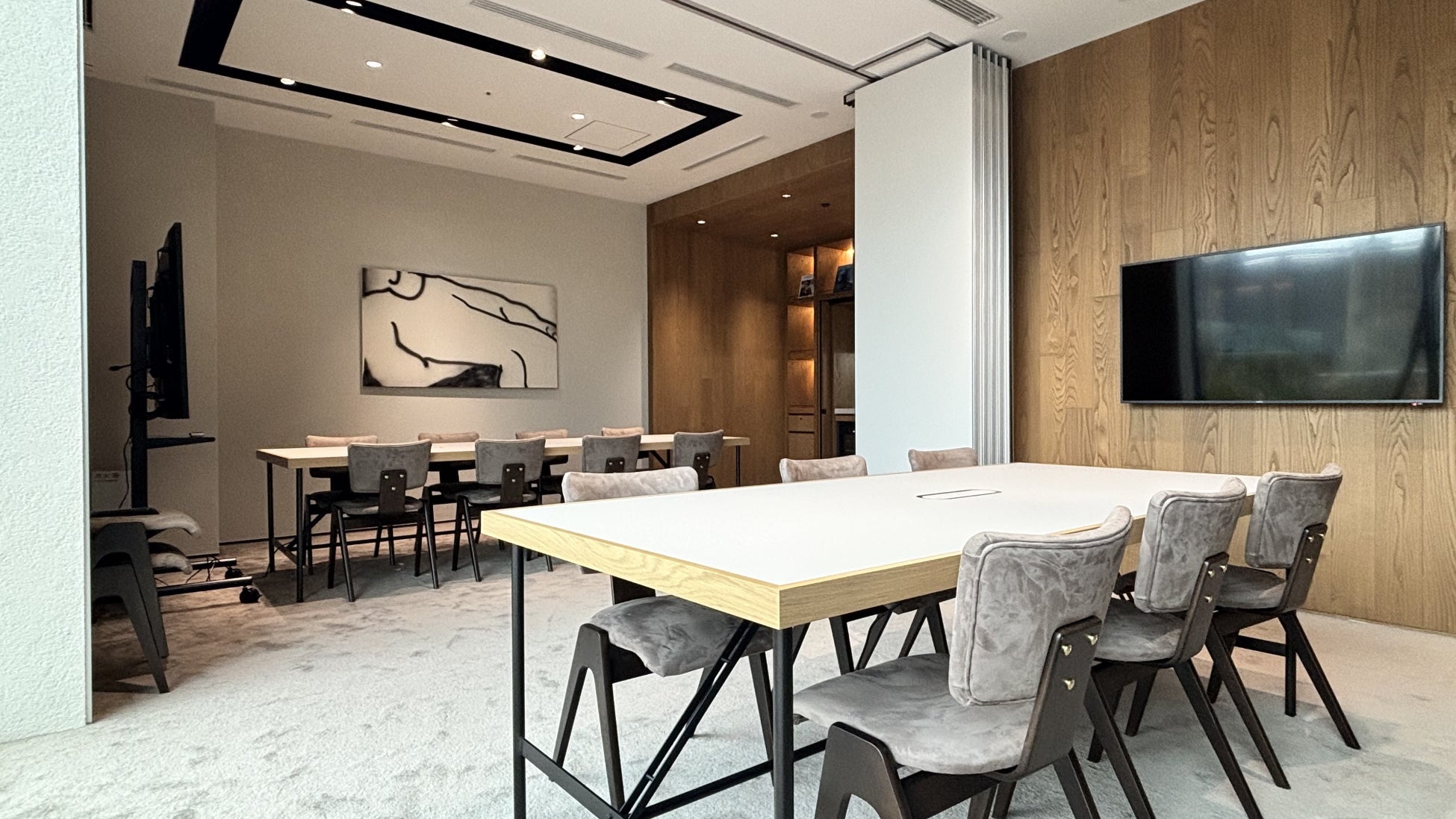 2室は連結利用も可能で、最大14名規模まで対応。通常の会議はもちろん、プレゼンテーション、ワークショップ、軽食を伴う交流会など、多様な用途に活用できます。オフィスビル内にありながら、柔軟性のある“使いこなせる空間”を目指しました。