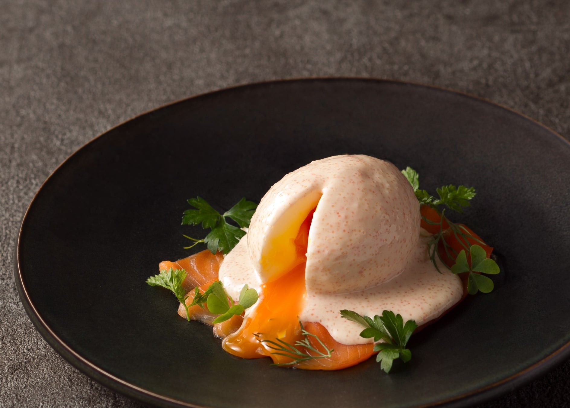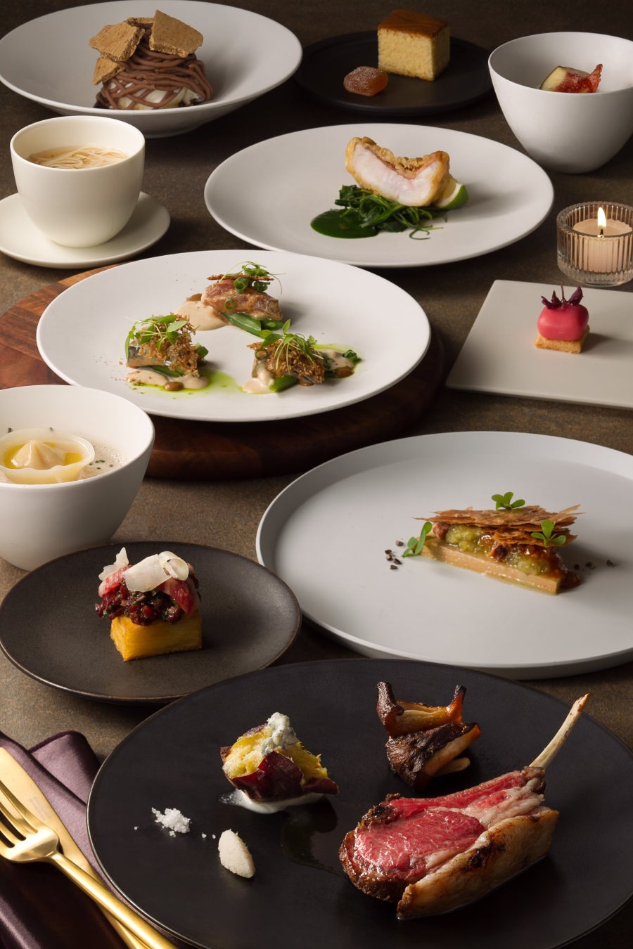 ディナーコース“Kyushu Premium”<秋>は、ホテルにいながら九州各地の食材を楽しんでいただけるよう、明太子、馬肉、ゴマとサバ、九州麦味噌、島原素麺、水炊きなど、郷土の食材や郷土料理をフレンチの手法で仕立てたコースです。シェフの遊び心がつまったイノベーティブなコースは、宿泊のお客様にも近隣のお客様にも楽しんでいただけるメニュー構成となっています。