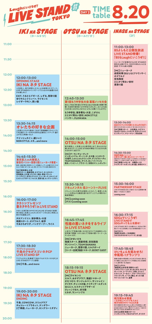 - 「LIVE STAND 22-23 TOKYO」 タイムテーブル 8月20日(2日目)