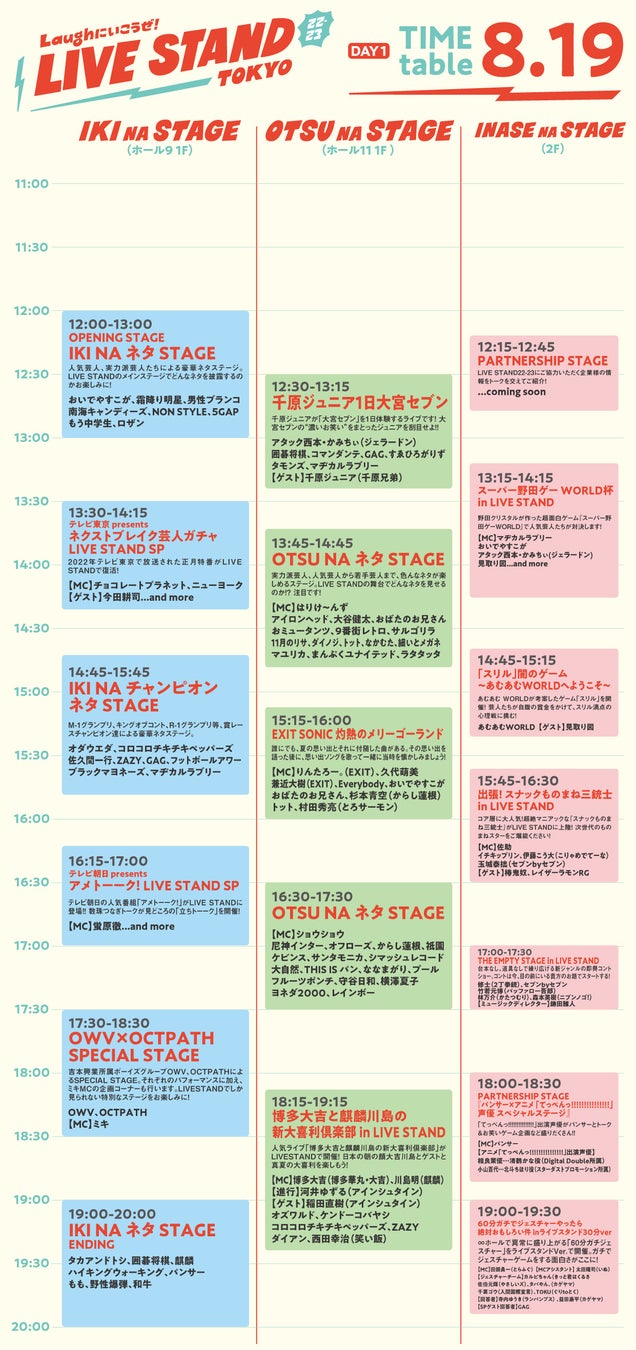 - 「LIVE STAND 22-23 TOKYO」 タイムテーブル 8月19日(1日目)