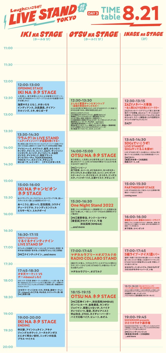 - 「LIVE STAND 22-23 TOKYO」 タイムテーブル 8月21日(3日目)