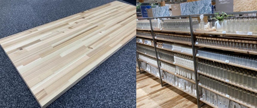 無印良品店舗の商品陳列用什器(棚板)で国産木材の使用を開始