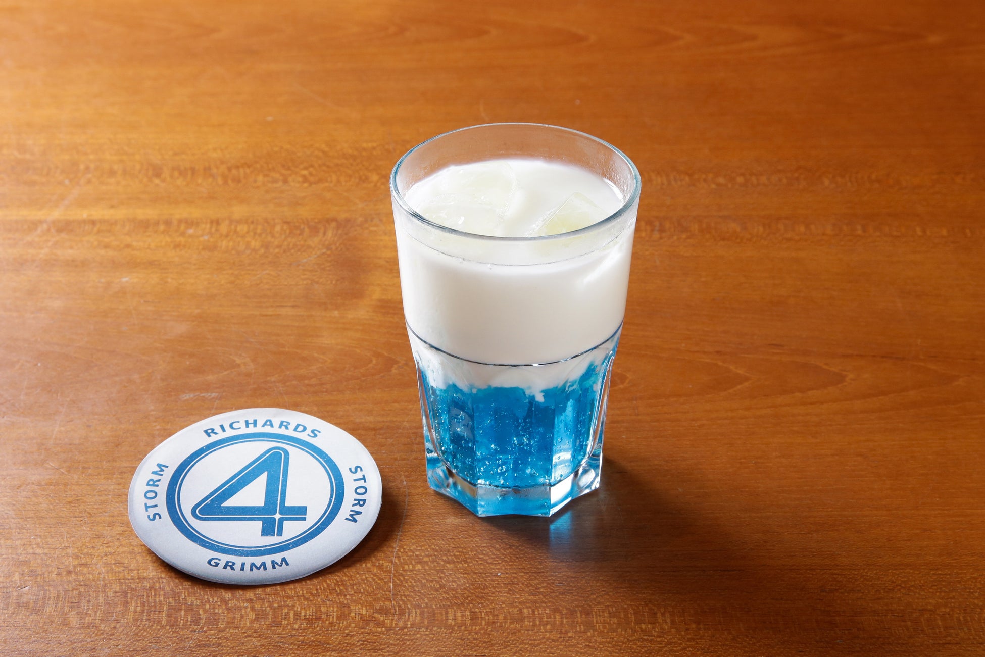 飲むヨーグルトとソーダ味の青いゼリーでテーマカラーをプラスしながら表現。爽やかで不思議な食感が楽しめる一杯。