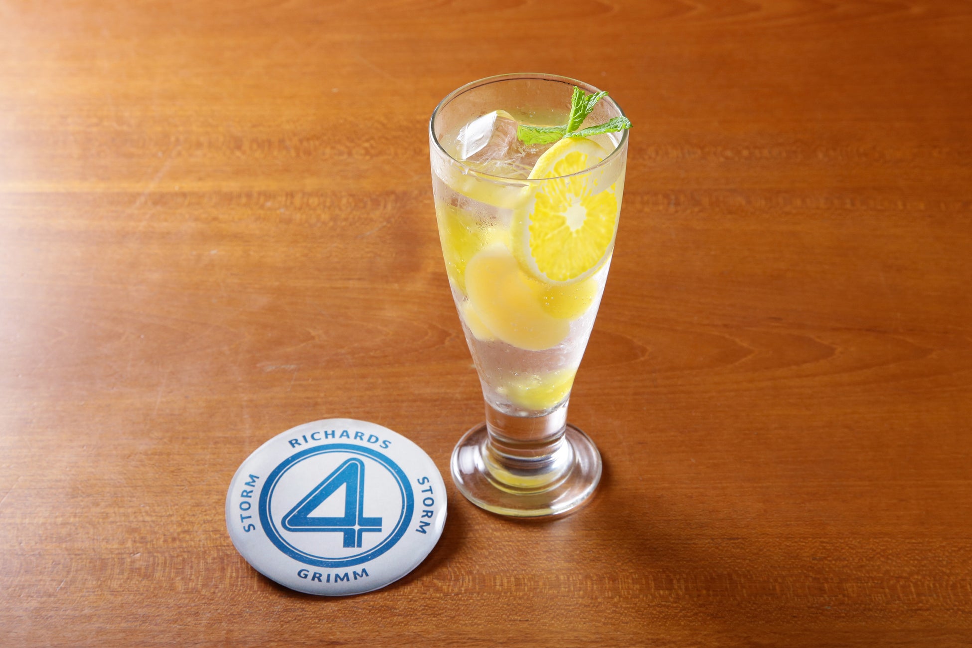 透明なソーダの中に、ピーチやレモン味の丸いゼリーを忍ばせて、フォース・フィールドを表現。