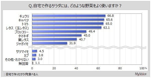 https://myel.myvoice.jp/products/detail/32302 ※上記設問の他、「サラダを食べる理由」も聞いています。 |