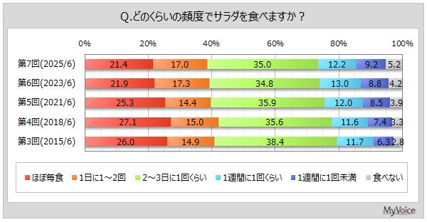 マイボイスコム株式会社(東京都千代田区、代表取締役社長:高井和久)は、7回目となる『サラダ』に関するインターネット調査を2025年6月1日~7日に実施しました。