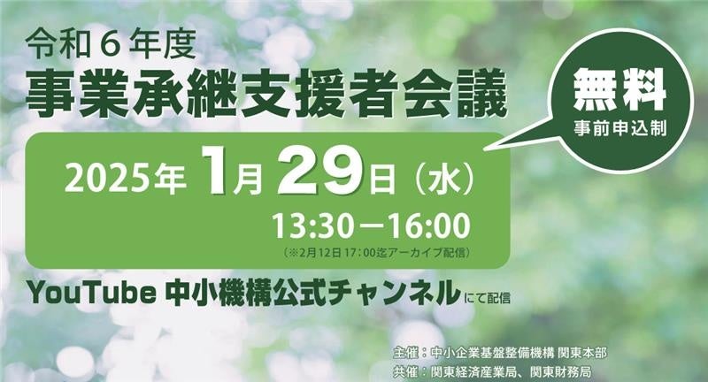 中小機構(独立行政法人中小企業基盤整備機構)関東本部は、支援機関の事業承継支援の取組を発表する中小企業支援機関向けイベント「令和6年度事業承継支援者会議」を1月29日(水曜)に開催いたします。