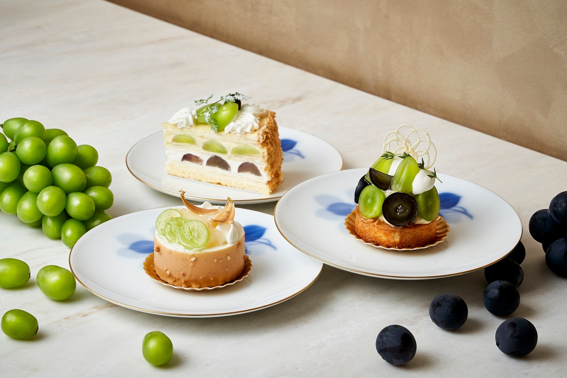 ぶどうのシュークリーム / ぶどうのクランブルケーキ / マスカットとレアチーズのムース /