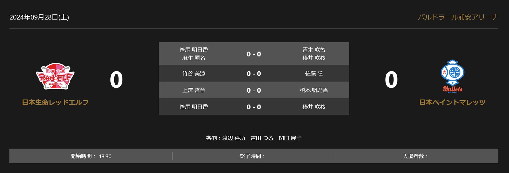 ノジマTリーグ 2024-2025シーズン 公式戦 9月28日開催 日本生命レッドエルフ vs 日本ペイントマレッツ 対戦オーダー発表