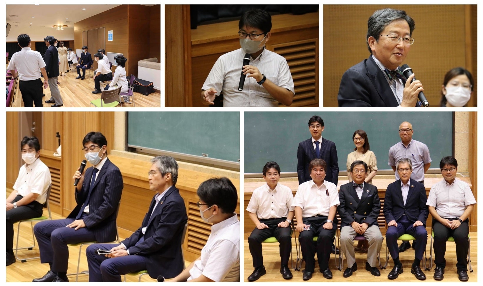 講演では、複合現実(Mixed Reality: MR)を活用したケアコミュニケーションの計算論的・心理学的理解と実践に関する大変興味深いお話があり、講演後の総合討論には、中澤教授、豊岡医学部長に加えて、阿部匡伸DX & GX担当理事・上席副学長並びに廣畑聡保健学研究科長もご登壇くださり、フロアからご発言くださった那須保友 学長も含めて組織の垣根を越えた教育研究連携について活発な意見交換が行われました。