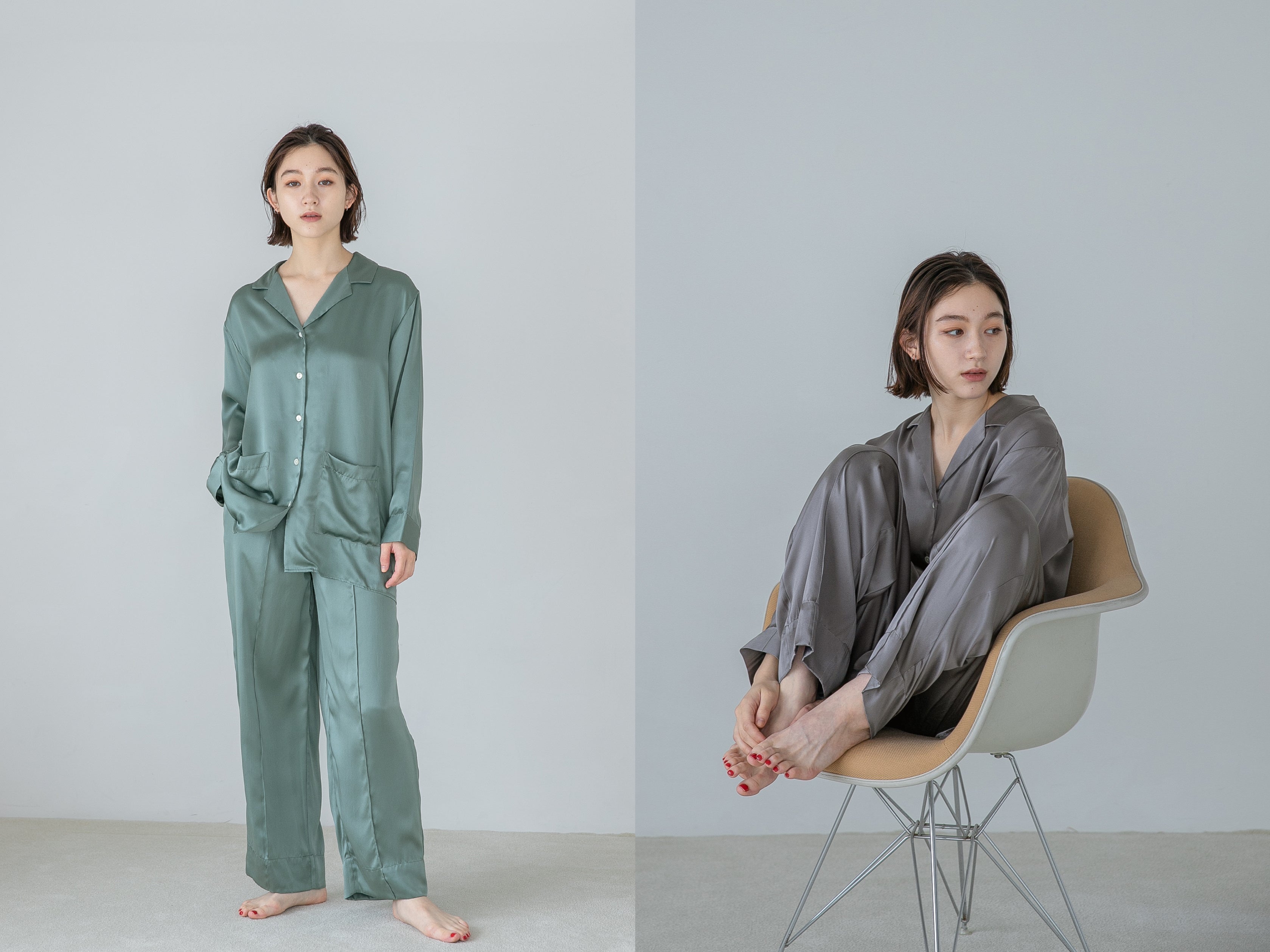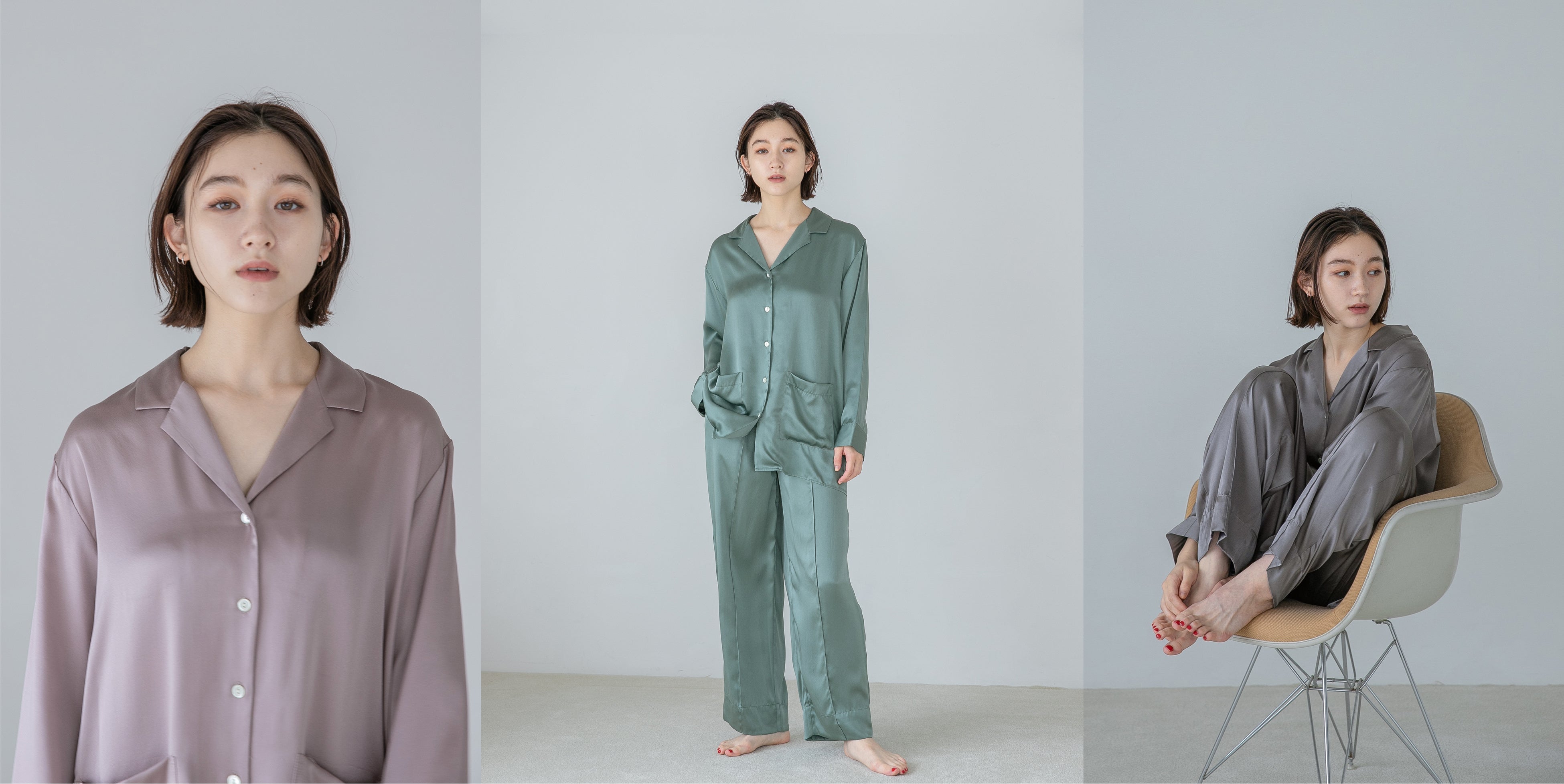 ブランドの顔であるウォッシャブルシルクサテンのスリープウエア。