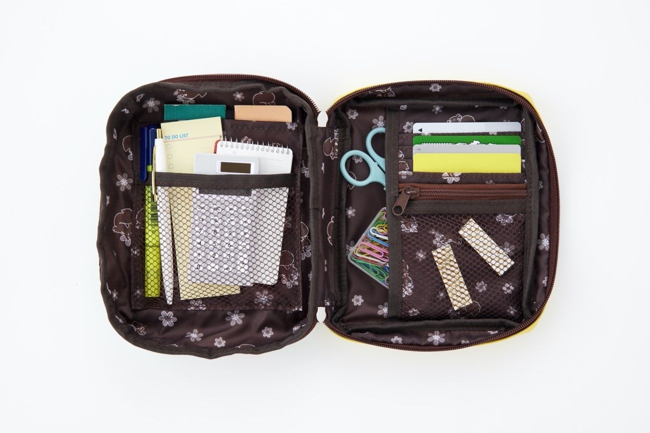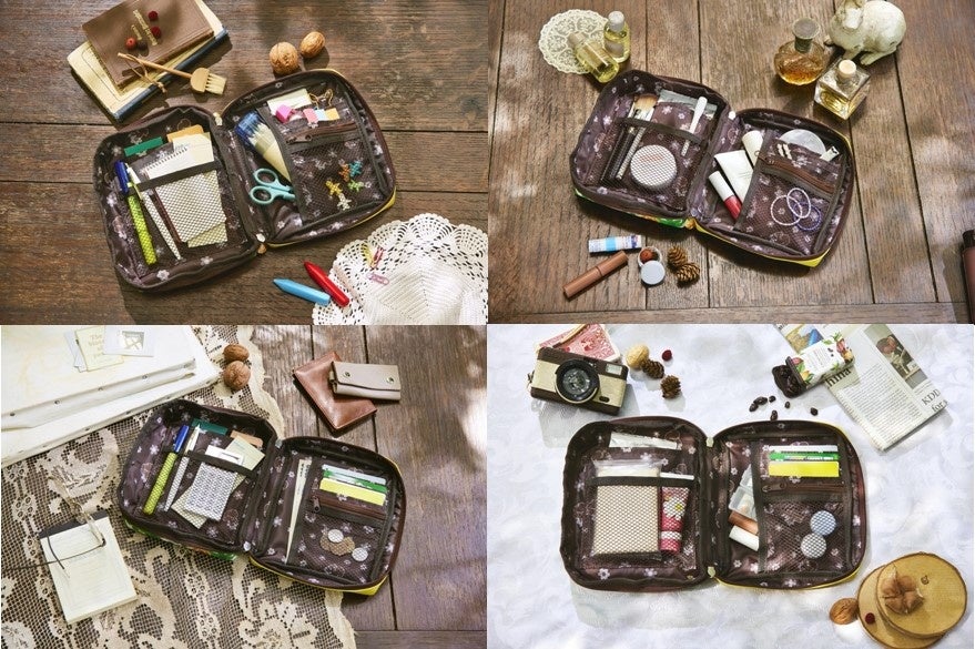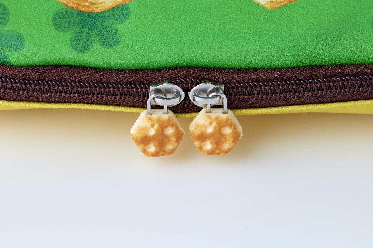 本誌限定アイテムのポーチは、リスのキャラクターがあしらわれた、かわいらしい「パイの実」のパッケージデザインをそのまま再現。ファスナーの引き手は、こんがりとした焼き色がリアルな「パイの実」チャームになっています。開けるとワイドポケットやメッシュポケットなど、計8つのポケットが付いて収納力も抜群です。ステーショナリーポーチ、コスメポーチ、家計管理ポーチなど、さまざまなシーンで活躍すること間違いなし! 見た目がかわいらしいだけでなく、ひとつで何役もこなせるおいしいポーチができあがりました。