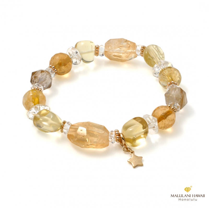 2026年のラッキーカラーはゴールド、レッド、オレンジ。それらの色をすべて含むような「ルチルクォーツ」をメインに使った金運に強いブレスレットです。
