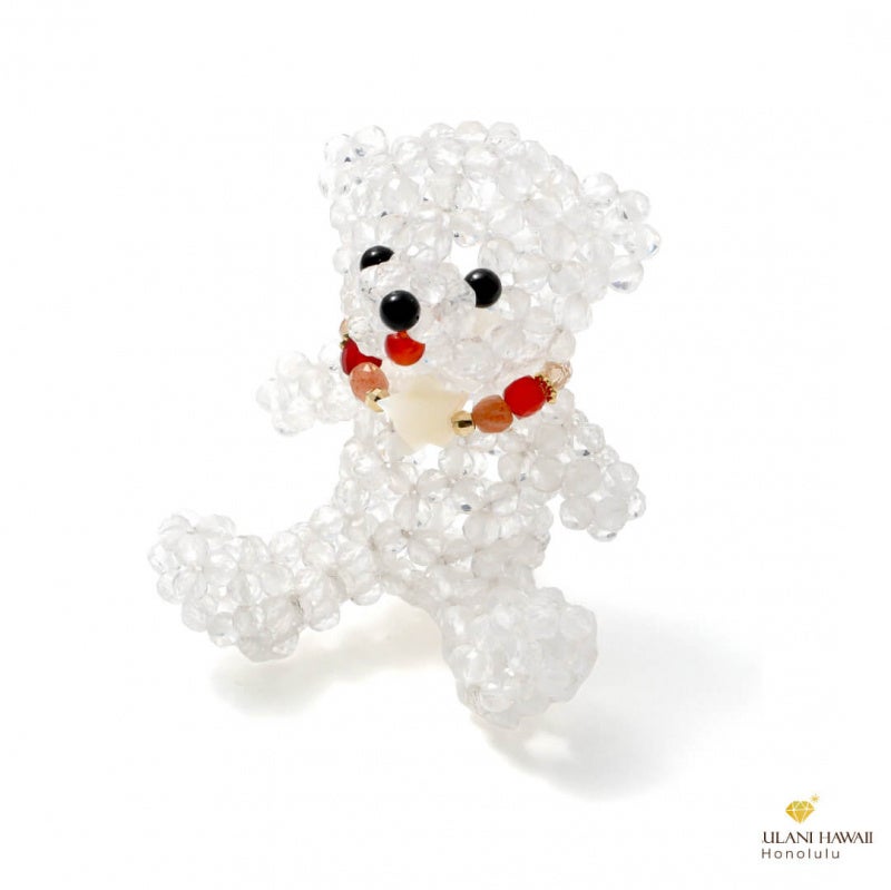 今年のクリスタルベアが首に巻いているのは、2026年のラッキーモチーフである「星型」にカットされた、強い願望実現力を持つ「マザーオブパール」と、