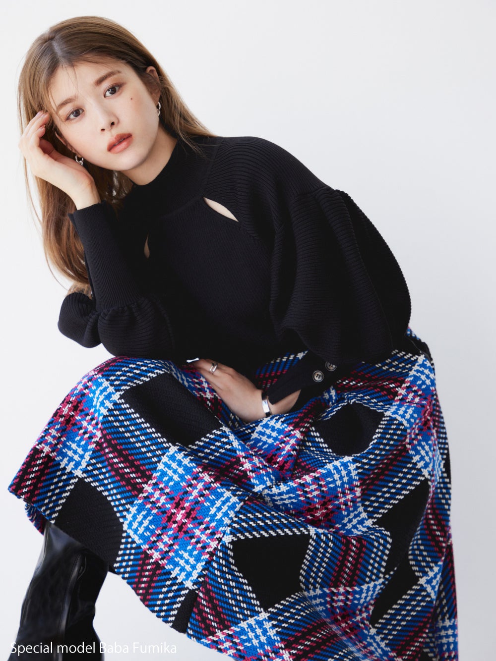 肩には「SNIDEL」らしくセンシュアルな開きをプラスし女性らしさを演出。