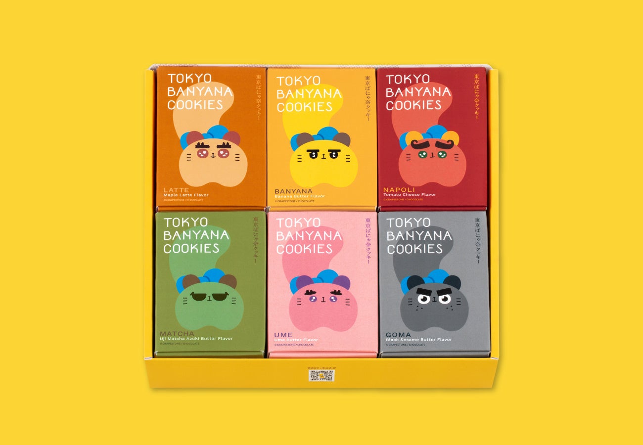 『東京ばにゃ奈クッキーズ』は全6種類。それぞれのフレーバーのイメージに合わせたキャラクターも誕生しました。好きなフレーバーやキャラクターで選べるミニボックスから東京みやげにピッタリなギフトボックスまであるので、自分用のおやつにも大切な方へのプレゼントにもおすすめです。