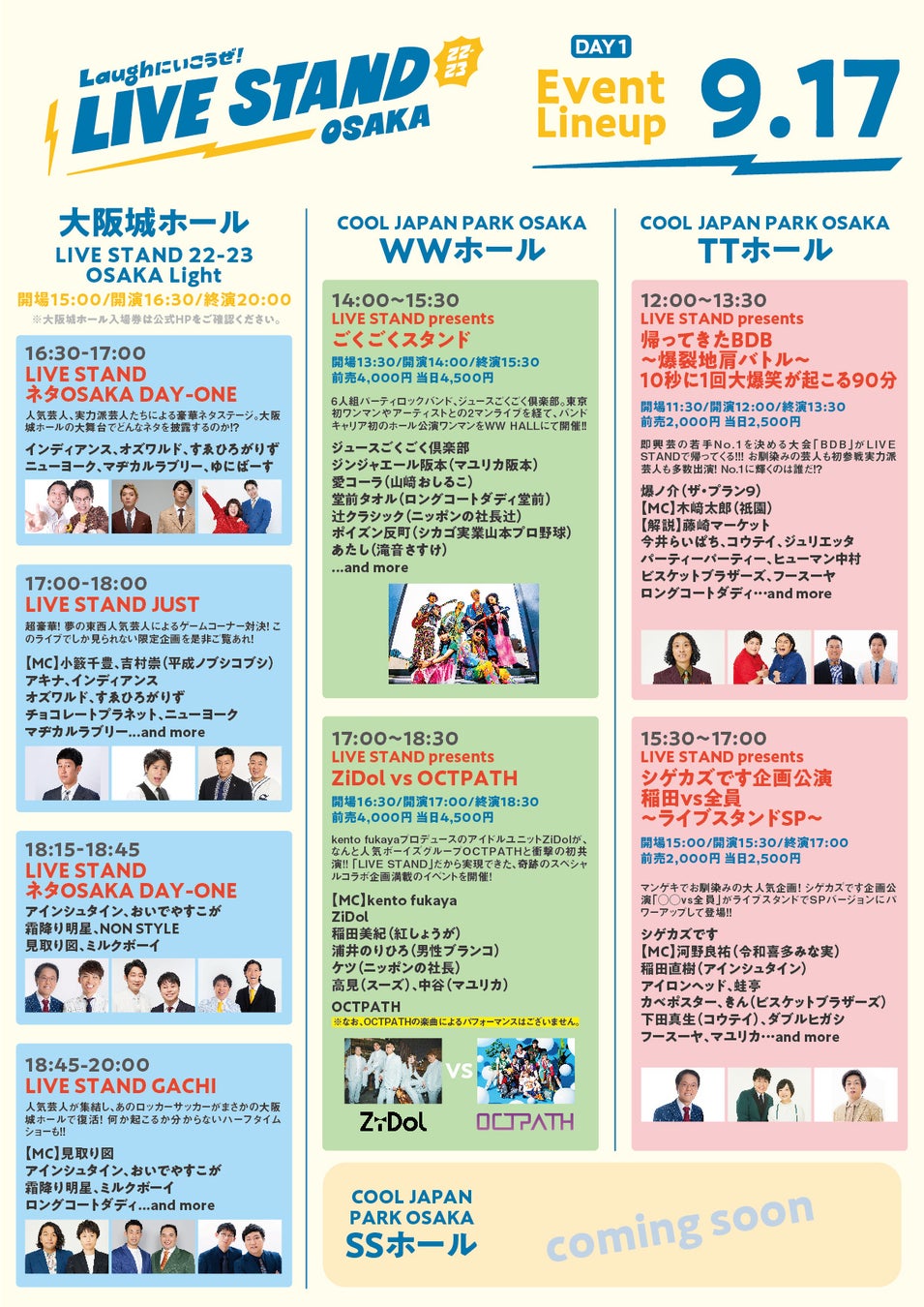 - 「LIVE STAND 22-23 OSAKA」タイムテーブル 9月17日(1日目)