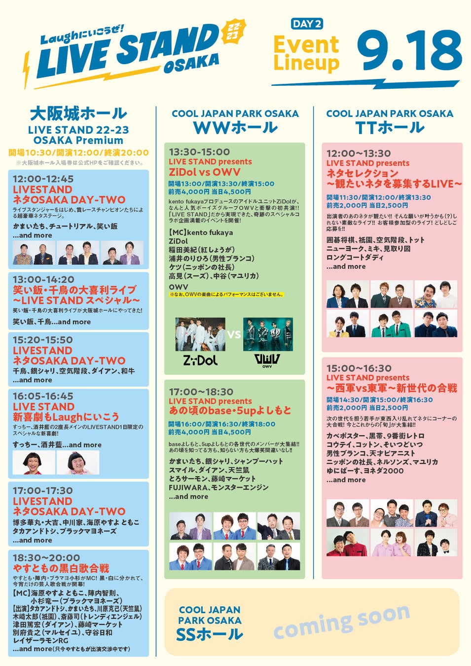 - 「LIVE STAND 22-23 OSAKA」タイムテーブル 9月18日(2日目)