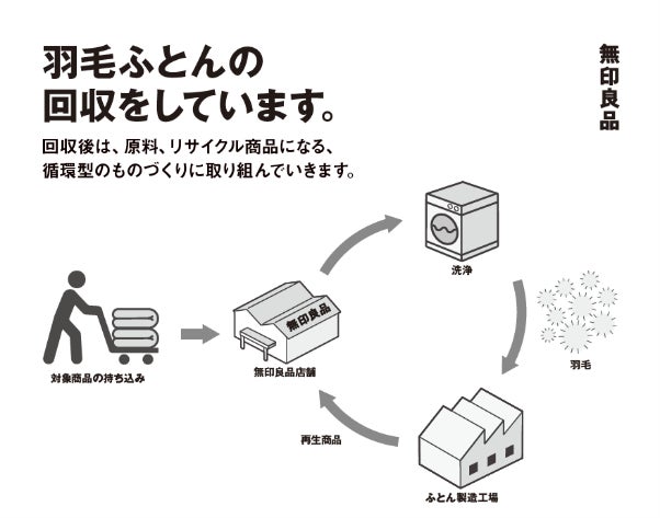 無印良品を展開する株式会社良品計画(東京都文京区/代表取締役社長 清水 智)は、このたび、無印良品で販売した羽毛布団の店頭回収を12月6日(金)より全国46店舗で開始いたします。また、羽毛布団をお持ち込みいただいたお客さまには、MUJI Passport アプリのMUJI マイル※を1,000マイル、プレゼントいたします。
