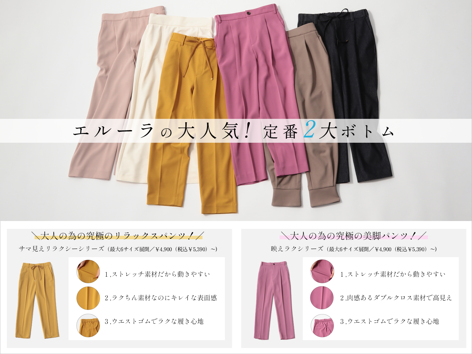 ■秋の新作・Elura大人気ボトムシリーズ「サマ見えパンツシリーズ」「映えラクパンツシリーズ」について