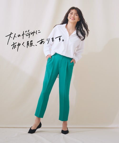 Eluraルミネ北千住店では、Eluraの大人気ボトムシリーズの新作もラインアップ。究極にリラクシーなのにキレイ見えも実現する「サマ見えボトムシリーズ」や、360度どこから見てもスタイル良く見せながら着心地も両立した「映えラクシリーズ」など、「大人の悩みに効く」Eluraの魅力がたっぷり詰まったアイテムを揃えました。