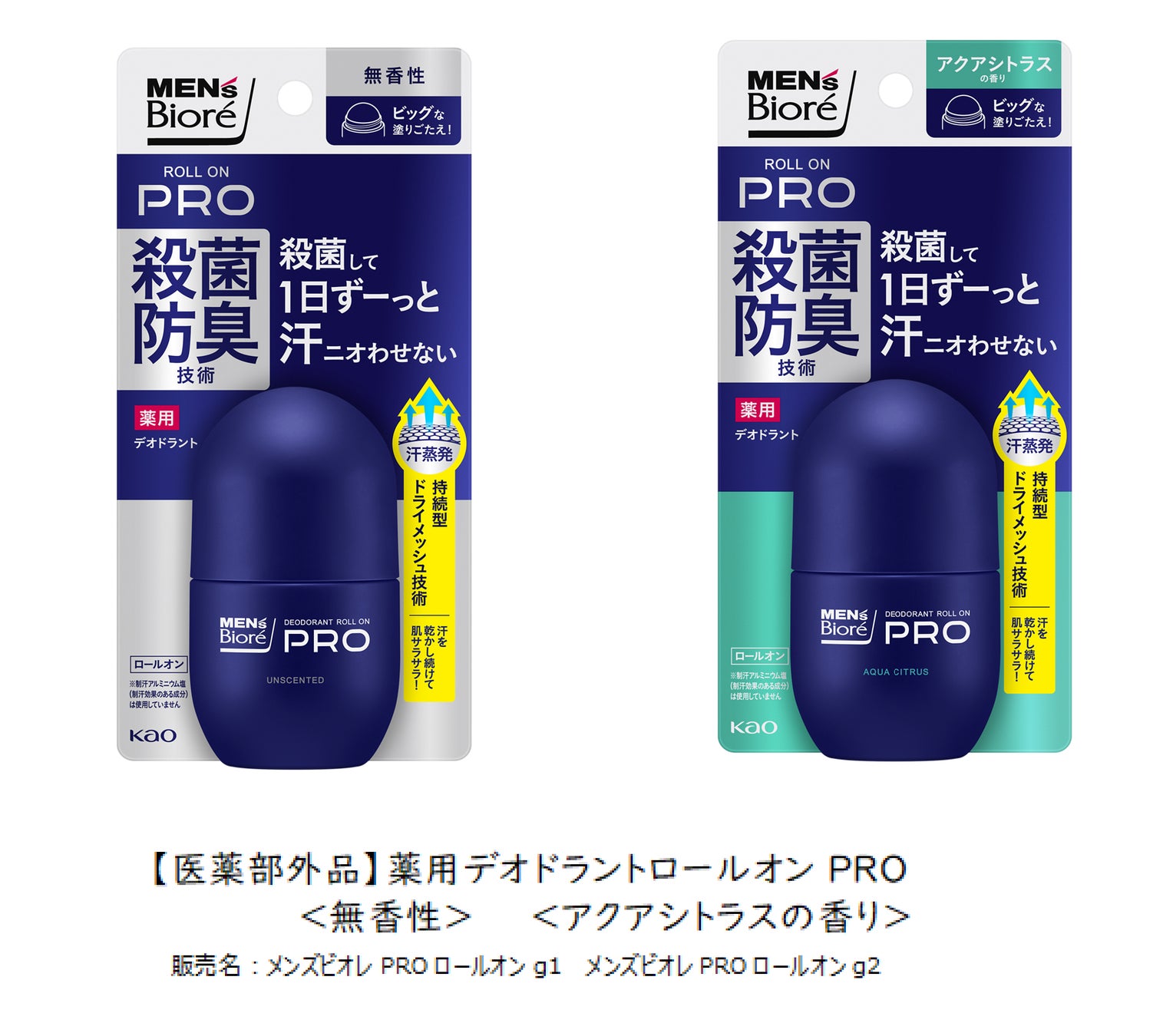 併せて、殺菌防臭技術で、1日ずーっと汗をニオわせない「メンズビオレ 薬用デオドラントロールオンPRO」【医薬部外品】と、足ムレ感0へ、1日ずーっと足サラサラの「メンズビオレ フットクリームPRO」を新シリーズとして発売します。