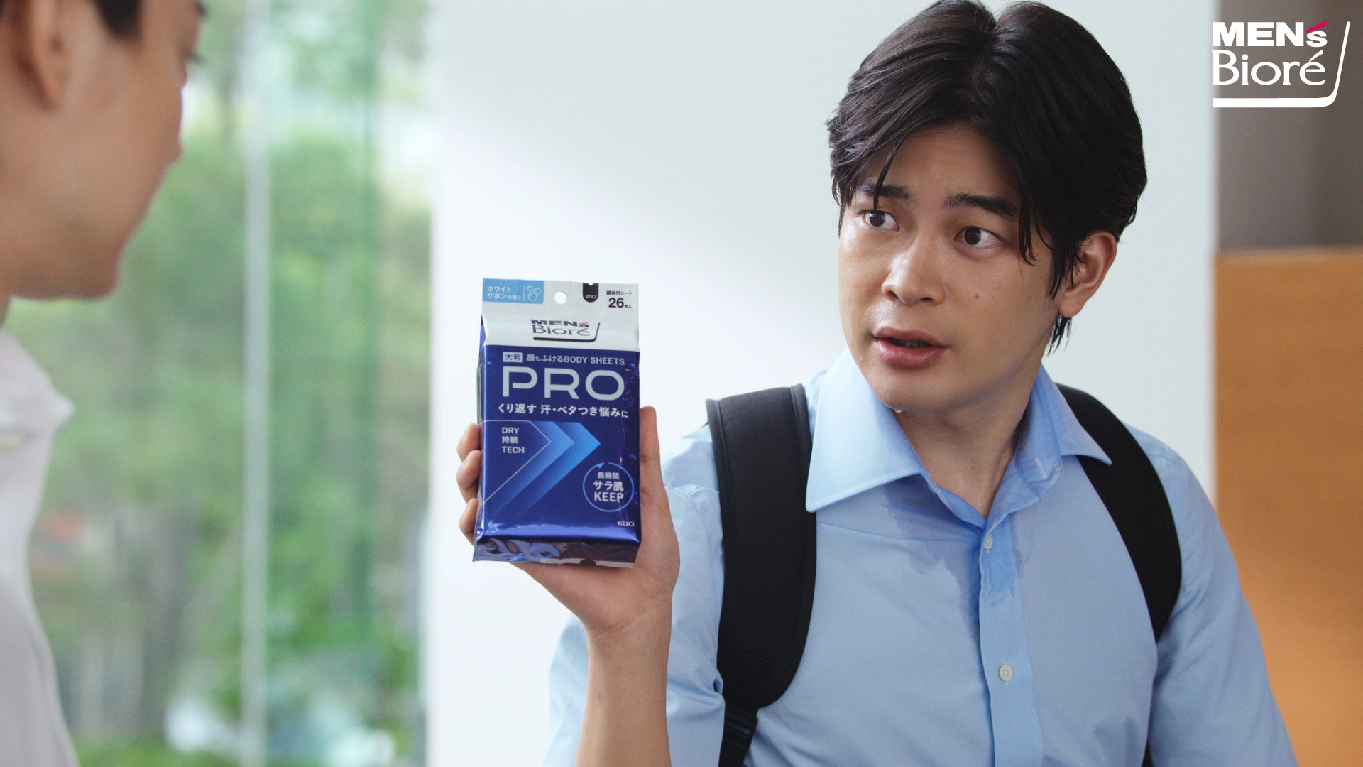 菅田将暉さん・井之脇海さんコンビでお届けするCM第2弾は、前作から一変し、キリリとした姿で街へ、オフィスへと飛び出します。顔もふけるボディシートPROならではの「長時間サラサラ肌が持続している」先進感あふれる、驚きの演出にご注目です!。「メンズビオレ」を好きすぎるがあまり、つい、貸したくないと妄想してしまう菅田さんと、今回も無邪気に貸してと欲しがる井之脇さん。見ごたえあふれるコミカルな掛け合いをお楽しみください。