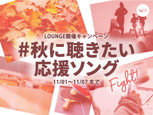 AWA株式会社(本社:東京都港区、代表取締役CEO:冨樫晃己)が運営する、サブスクリプション型(定額制)音楽ストリーミングサービス「AWA(アワ)」は、ユーザー同士がリアルタイムに、同じ空間で同じ音楽を楽しみながらチャットができるオンライン空間「LOUNGE(ラウンジ)」で、「#秋に聴きたい応援ソング」を付けて、この秋を彩るLOUNGEキャンペーンを開催いたします。