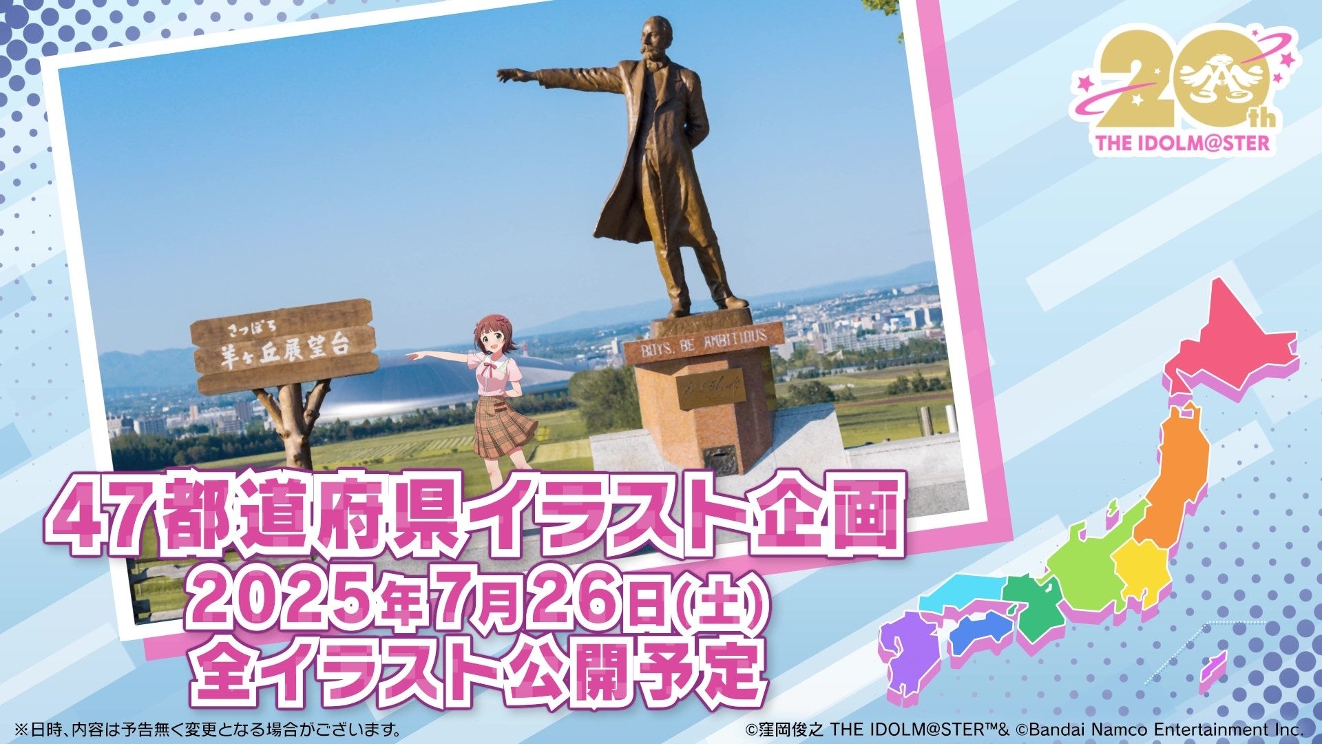 「日本全国、アイドルたちがアイに行きマス!」をテーマに、20周年を記念した「47都道府県イラスト企画」が始動いたしました。