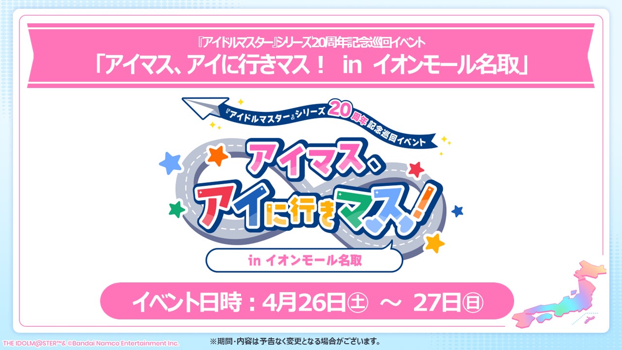 イベント情報の詳細は下記「アイドルマスター ポータル」ニュースページまたは「アイに行きマス」特設サイトをご確認ください。