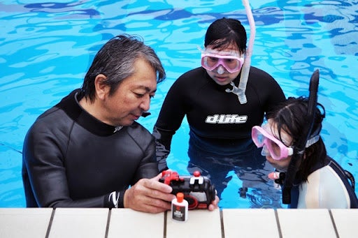 TBS「世界遺産」やNHK「ダーウィンが来た!」などの水中撮影を担当している日本トップクラスの水中カメラマン佐藤長明さんの指導を受け、中学生・高校生が海に潜って水中撮影し、映像制作に挑戦する講座です。数名ずつのチームに分かれて、自分たちでテーマを決めて撮影・編集を行い、最終的に自分たちで作った映像を使って小学生に「海の基礎知識や魅力を伝える授業」を行うことを目指します。