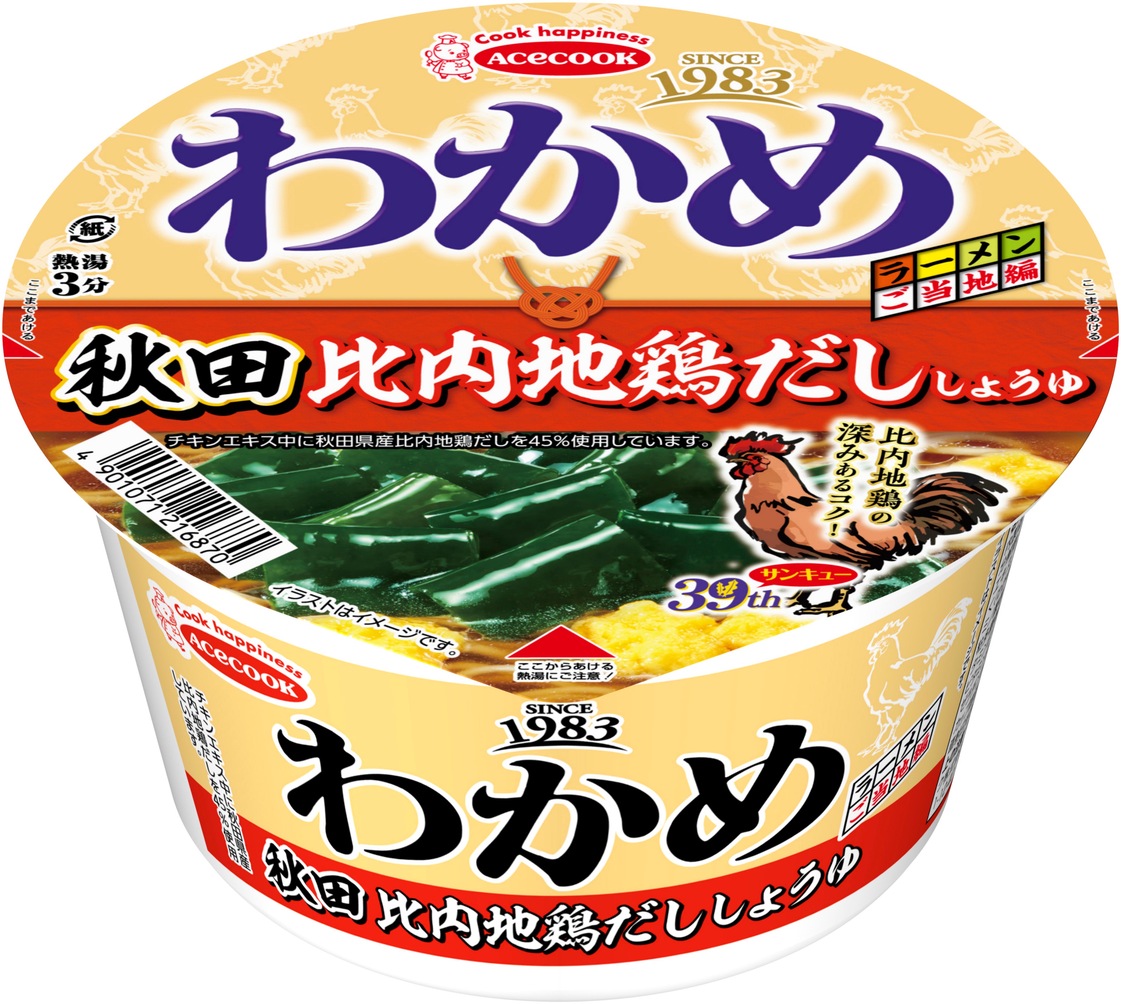 ② 39周年(サンキューイヤー)の締めくくりをおいしく楽しく盛り上げるため、ヘルシーなわかめ具材はそのままに、全国各地のご当地食材のおいしさを詰め込んだ一杯を開発!