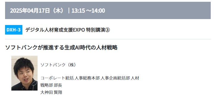 2025年4月15日(火)~17日(木)に東京ビッグサイトで開催される「NexTech Week 2025 春」では、生成AI人材など、デジタル人材育成への取り組みを先進企業が語る特別講演を開催します。