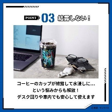 冷たいドリンクも、温かいドリンクも飲みごろ温度を長時間キープし、コンビニのカップコーヒーをそのまま入れることもできる便利すぎるタンブラーに、ガンプラの美麗パッケージアートを大胆にプリントしました。5種を並べると壮観です!