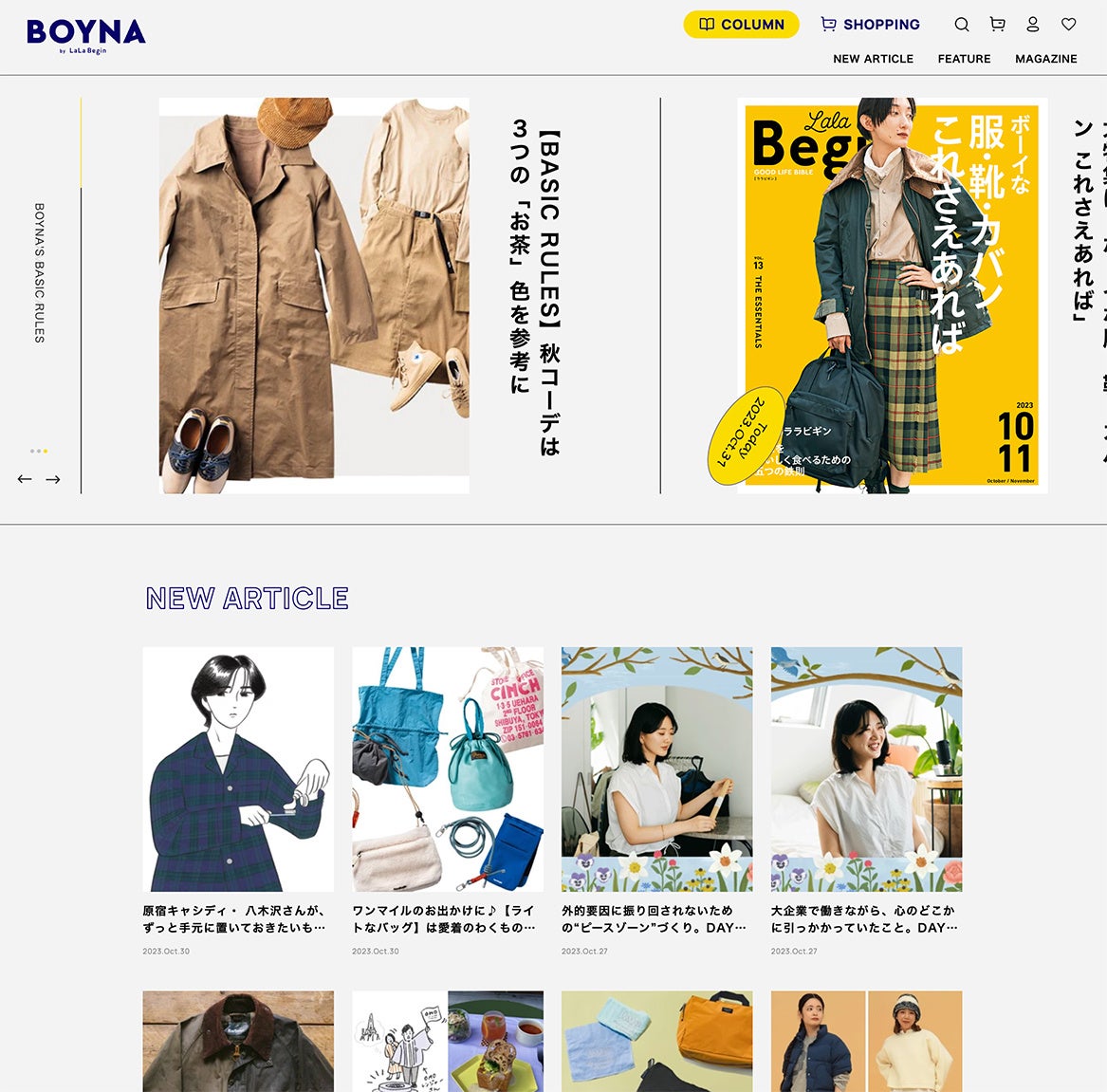 LaLa Beginのサイト「BOYNA」がリニューアルオープン! 読みものもお買いものも一緒になってさらに充実