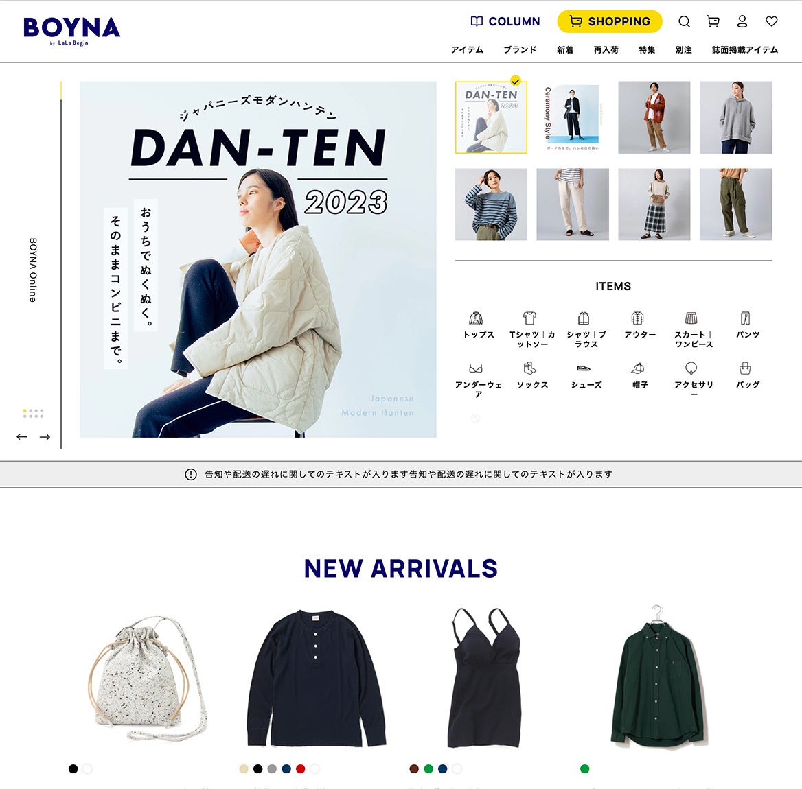 「BOYNA」─ その名前の由来は「ボーイな」。ボーイッシュなスタンダードアイテムを好むすべての人々に響くコンテンツを、との思いを込めて命名しました。サイトの二本柱は、COLUMN(読みもの)とSHOPPING(買いもの)。